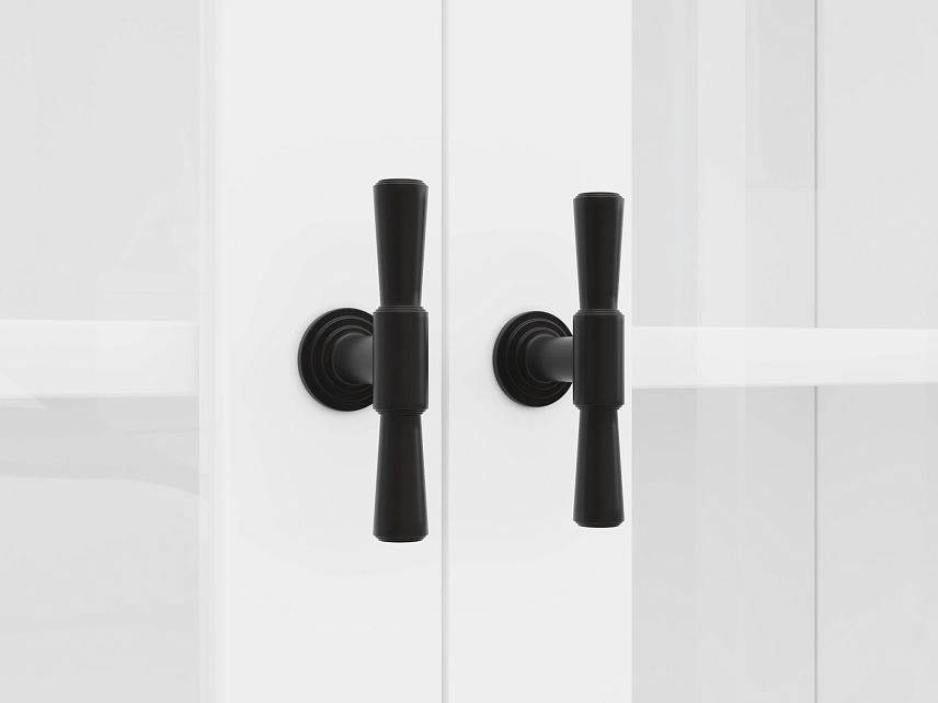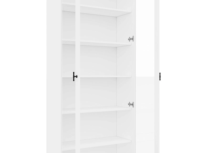 Комплектация: фасады - рамка МДФ квадро + вставка стекло простое, задняя стенка ЛДВП белого цвета, ручка ZA2391 кнопка черная MBK, арт. № 39512, петли без доводчика