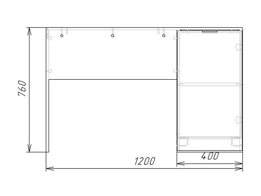 Габаритные размеры (мм): ширина 1200, высота 760, глубина 500