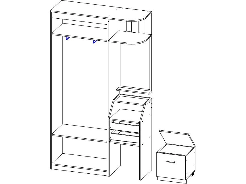 | Шкаф угловой 1 дверный | 350 | 800 | 600 |