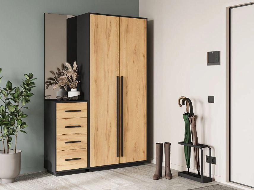 ЛДСП 16мм. Кромка в цвет корпуса. Направляющие на выдвижные ящики 100%. Штанга выдвижная 300мм. Ручки на шкаф арт.39215, ручки на комод арт. 39241