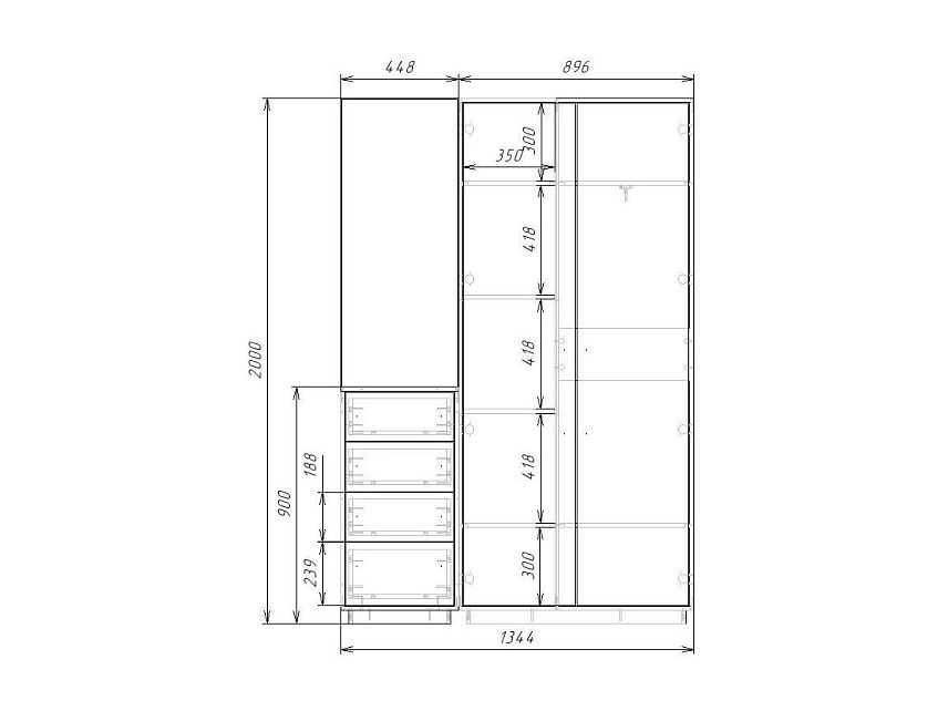 | Шкафы распашные, угловые | 350 | 800 | 500 |