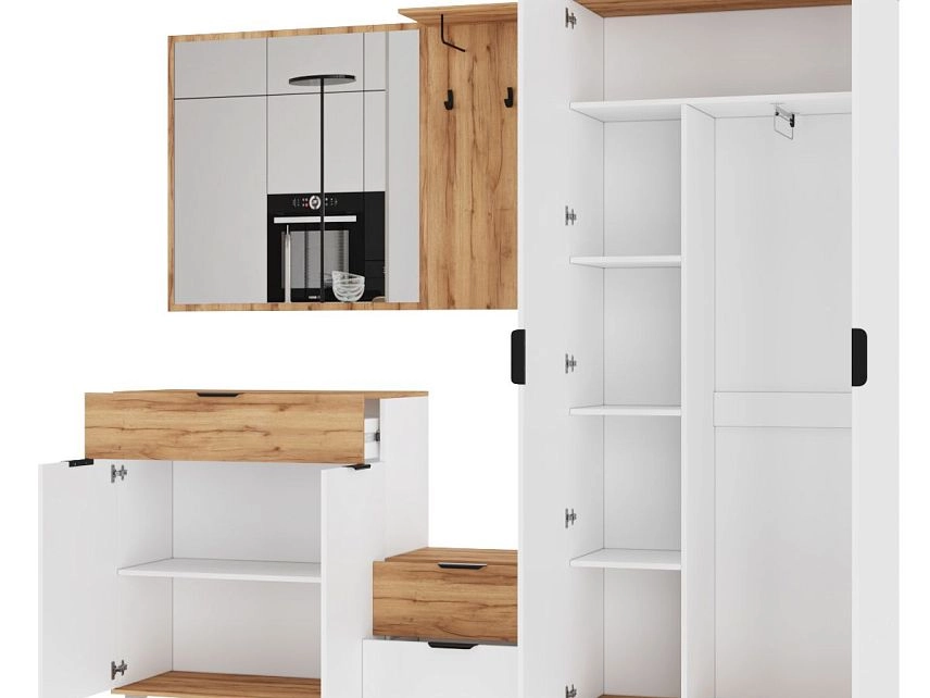 Комплектация: ручка мебельная торцевая 128 мм, черный RT110BL.1/128/150 BOYARD, арт.719962-2; крючок мебельный однорожковый ВМ-2 металлический черный АЛДИ, арт.07219; опора мебельная регулируемая прямоугольная №6 54*54*20 мм металлик АЛИДИ, арт.10196; шариковые направляющие, вешалка-кронштейн 192*75ММ черная АЛДИ, арт.07192
