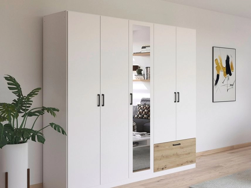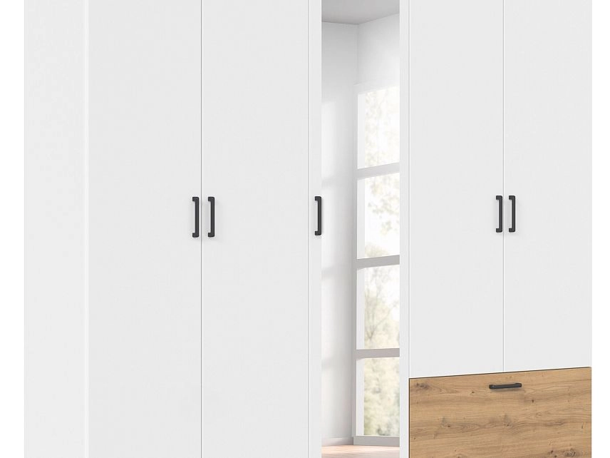 - Шкаф распашной Бари-4 Белый / Дуб Бунратти