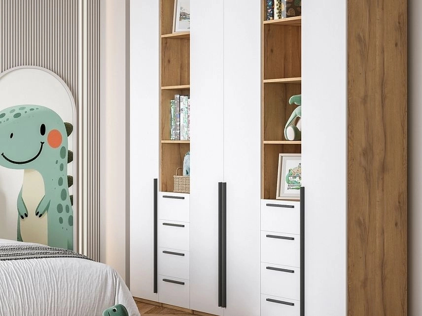 - Шкаф распашной Хейсон-16 Белый Дуб Золотистый