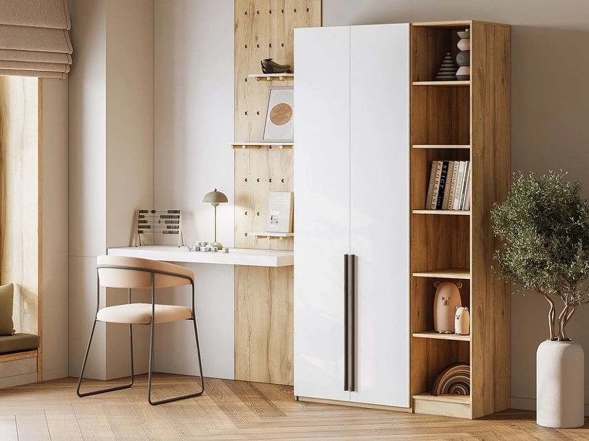 - Шкаф распашной Хейсон-23 Белый Дуб Золотистый