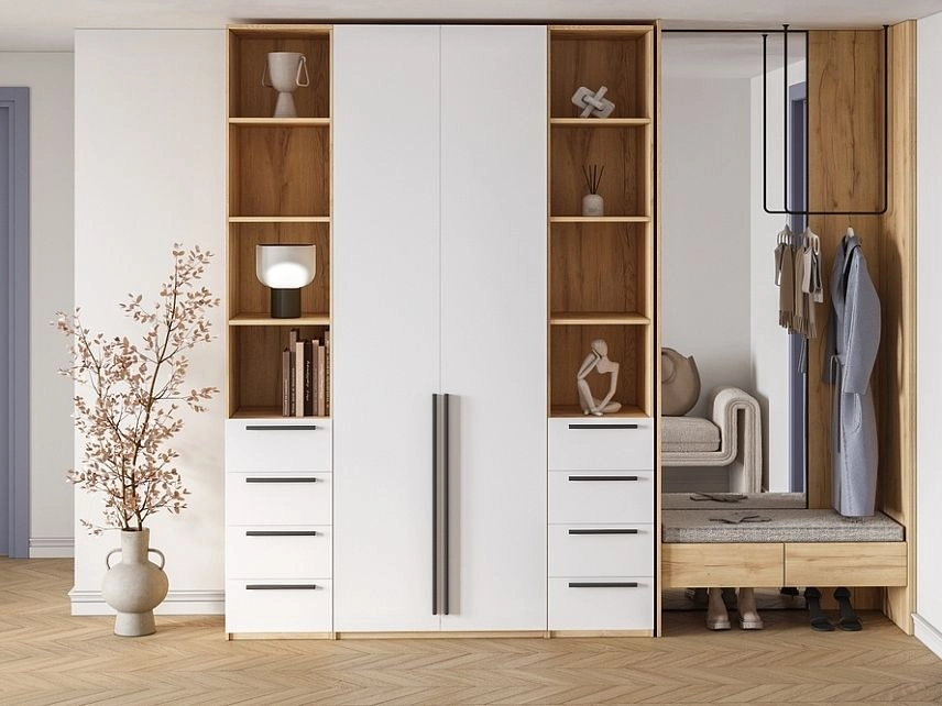 - Шкаф распашной Хейсон-25 Белый Дуб Золотистый