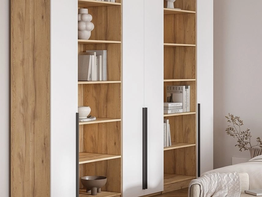 - Шкаф распашной Хейсон-3 Белый Дуб Золотистый