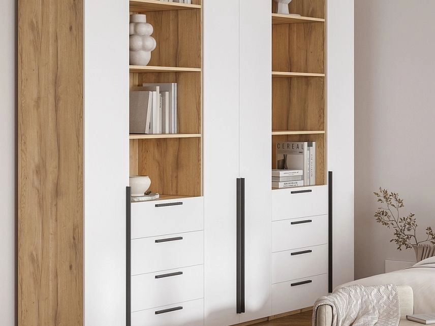 - Шкаф распашной Хейсон-4 Белый Дуб Золотистый