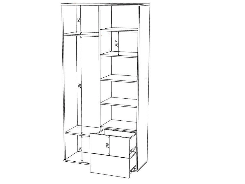 Наполнение: Полка + выдвижной кронштейн + Полка/ 4 полки + 2 ящика