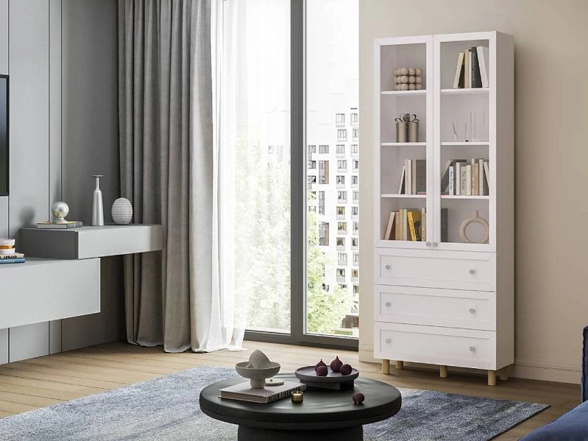 Комплектация: фасады - рамка МДФ квадро + вставка ЛДСП/стекло простое, задняя стенка ЛДВП белого цвета, ручка кнопка КН-1 хром, петли без доводчика, роликовые направляющие, ножки 150 мм