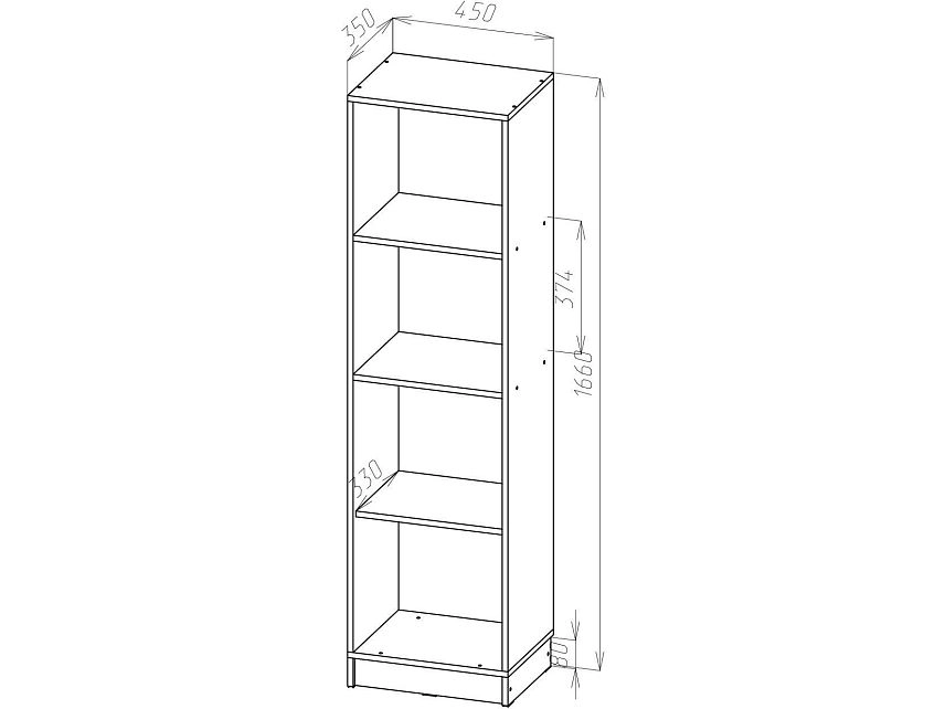 | Книжные шкафы, стеллажи от 600 мм до 1000 мм | 350 | 1000 | 600 |