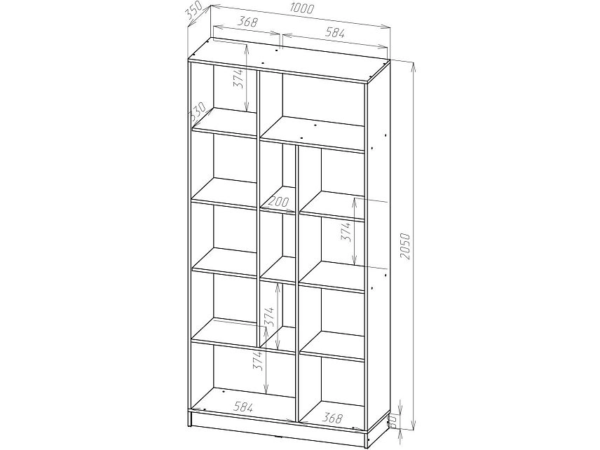 | Книжные шкафы, стеллажи от 600 мм до 1000 мм | 350 | 1000 | 600 |