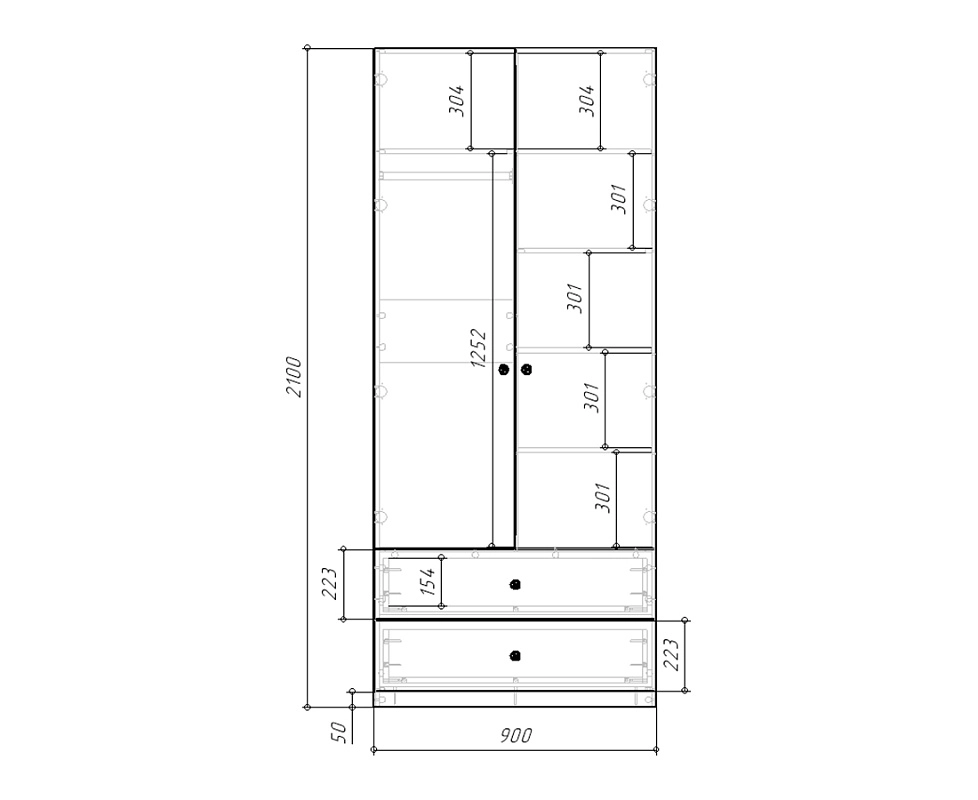 шкаф распашной Стрекоза-2.2: 900х2100х520