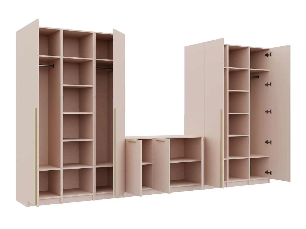 Петли без доводчиков. Направляющие шариковые 100% выдвижения без доводчика. Штанга металл Ф25мм. Ручки: Ручка CPA1 мебельная накладная м.ц.160 мм L 188мм,алюминий золото RCPА1A.188GADI, Ручка CPA1 мебельная накладная м.ц. мм L 1000мм,алюминий золото RCPА1A.1000GADI
