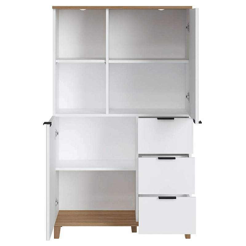 Комплектация: ручка 39490 торцевая черный матовый, шариковые направляющие 100% выдвижения, стекло простое, петли без доводчика, ножки массив