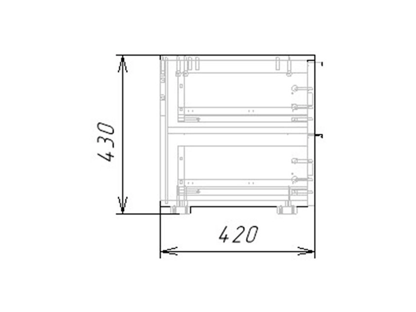 Комплектация: шариковые направляющие 100% выдвижения, опора регулируемая Н20мм, ручка торцевая арт.19283, петли без доводчика